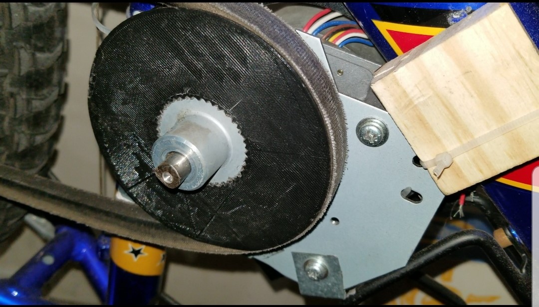 was to design a pulley that would directly fit over the metal toothed pulley wheel that originally came with the motor.